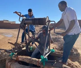 Wij zijn gestart met de bouw van een eerste waterput in september 2023 in de oase van M'Hamid tussen de dorpen Rguabi en Ouled Driss en in maart 2024 werd gestart met een tweede waterput op een afstand van de eerste waterput. Ondertussen zijn er al meer dan 30 gezinnen die op een efficiënte en voor iedereen gelijk toegankelijke manier gebruik maken van he water uit de waterputten om hun dadelpalmen en moestuintjes te bevloeien. Verder wordt er ook gestart met het aanplanten van bomen naast het dorp Rguabi zodat het dorp meer omringd is door schaduw en de temperatuur zo minder snel stijgt maar ook op die manier beschermd wordt tegen het opwaaiende zand. In januari 2025 werd onze vzw Save the oasis opgericht en met deze vzw gaan we samen verder met onze doelstelling: de oase weer groen laten en een aangename plaats worden om er te leven!